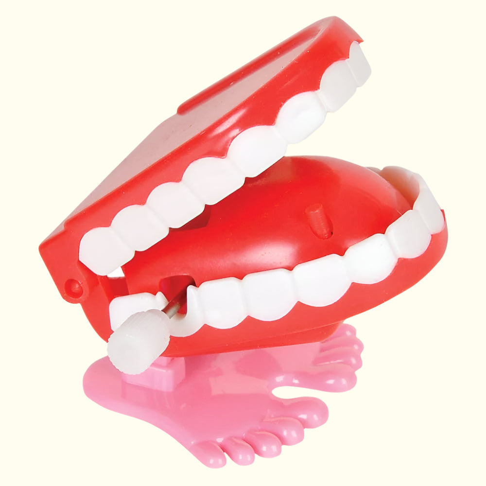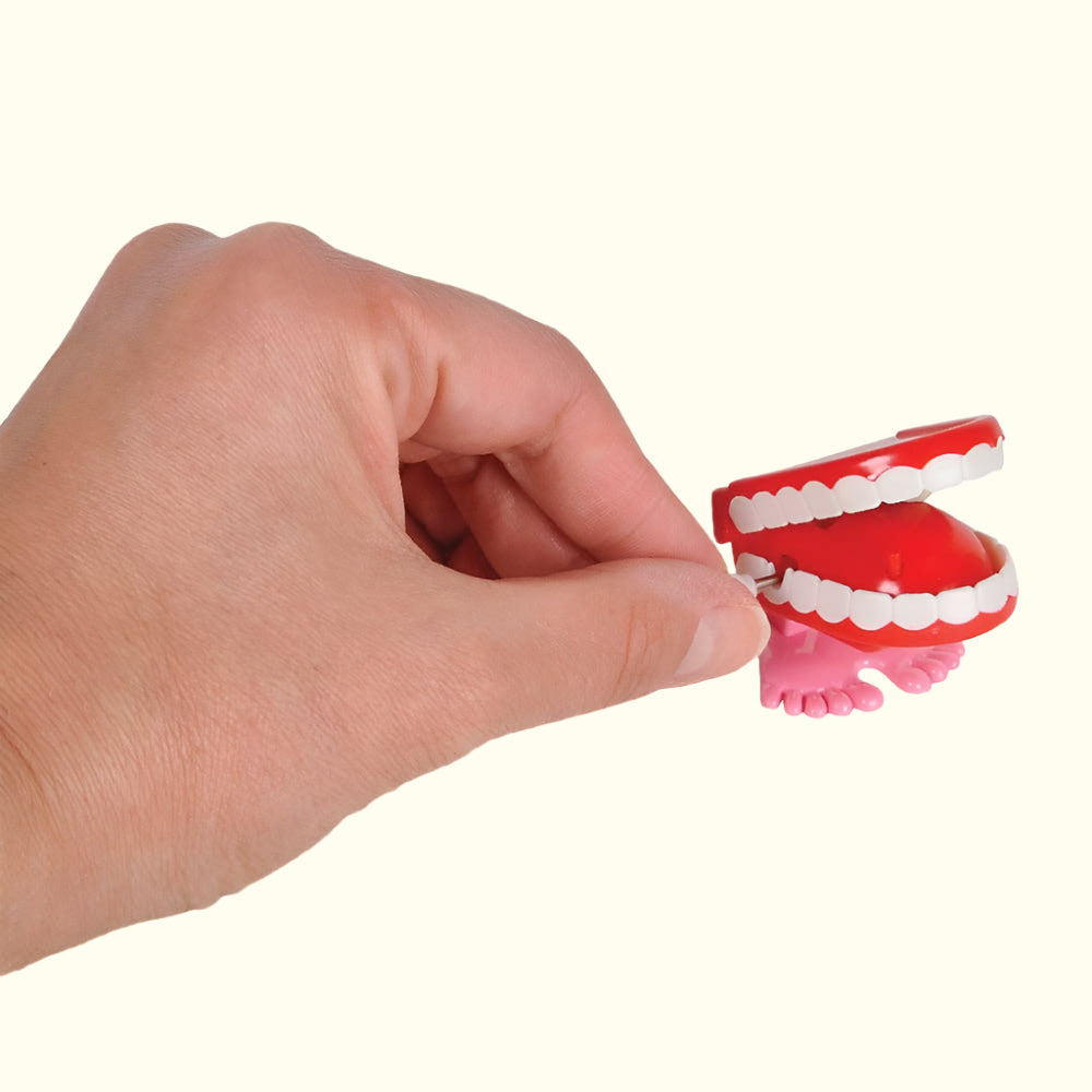 These 1.75-inch wind-up chatter teeth toys hop and chatter with endless fun.