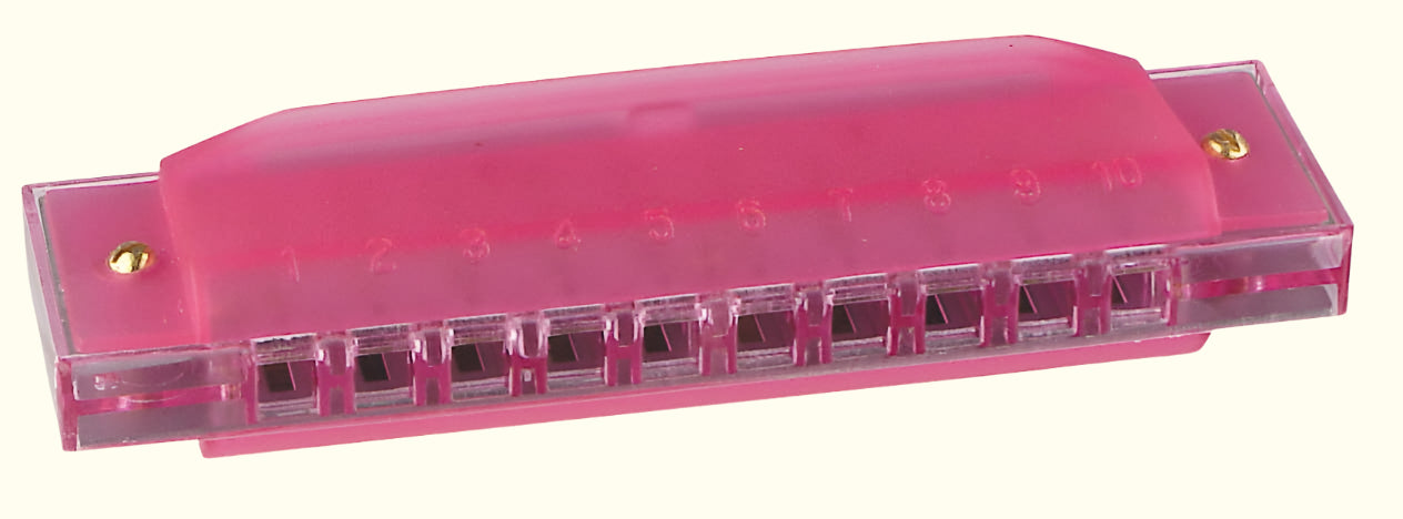 This beginner-friendly plastic harmonica is ideally sized for kids and comes in an assortment of colors. Each 4-inch translucent harmonica is contained with a clear plastic case for easy take-and-play musical fun. Harmonicas come in an assortment of colors.