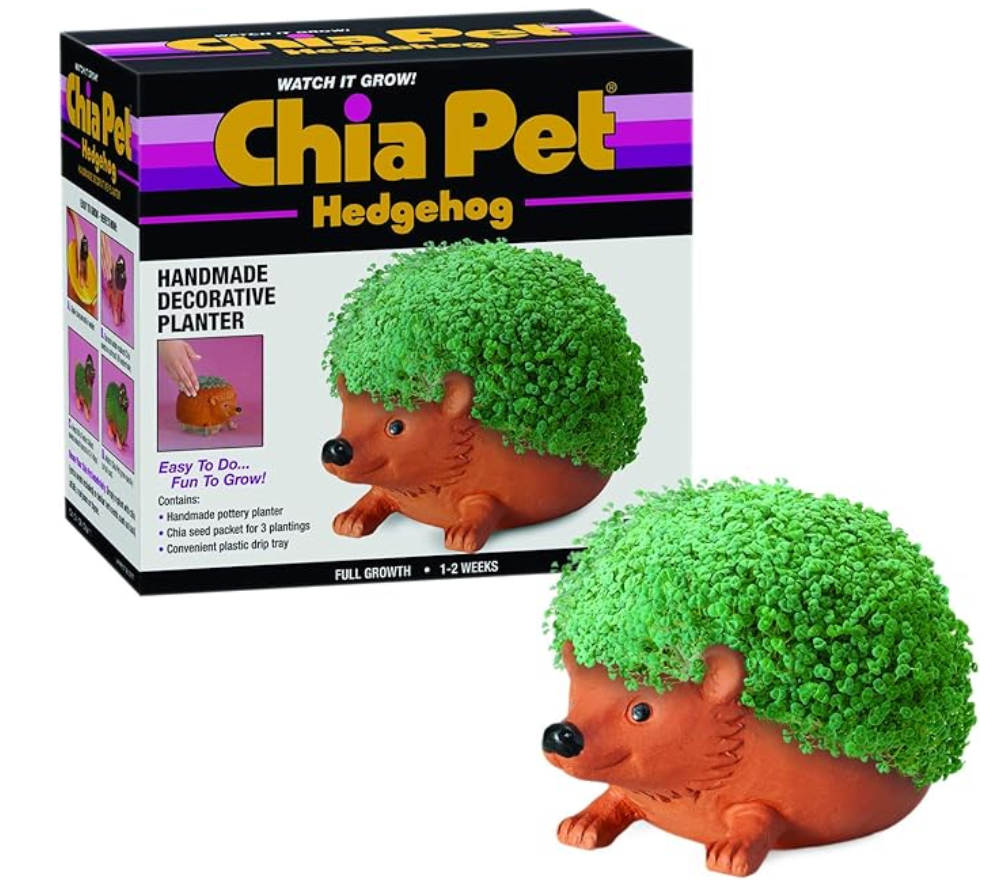 Bring home everything you need to grow your own charming Chia Pet! This set includes a one-of-a-kind pottery planter that adds character to any space, a handy plastic drip tray to keep surfaces clean, and chia seed packets enough for three rounds of planting fun. Watch your new green friend sprout and thrive with ease!