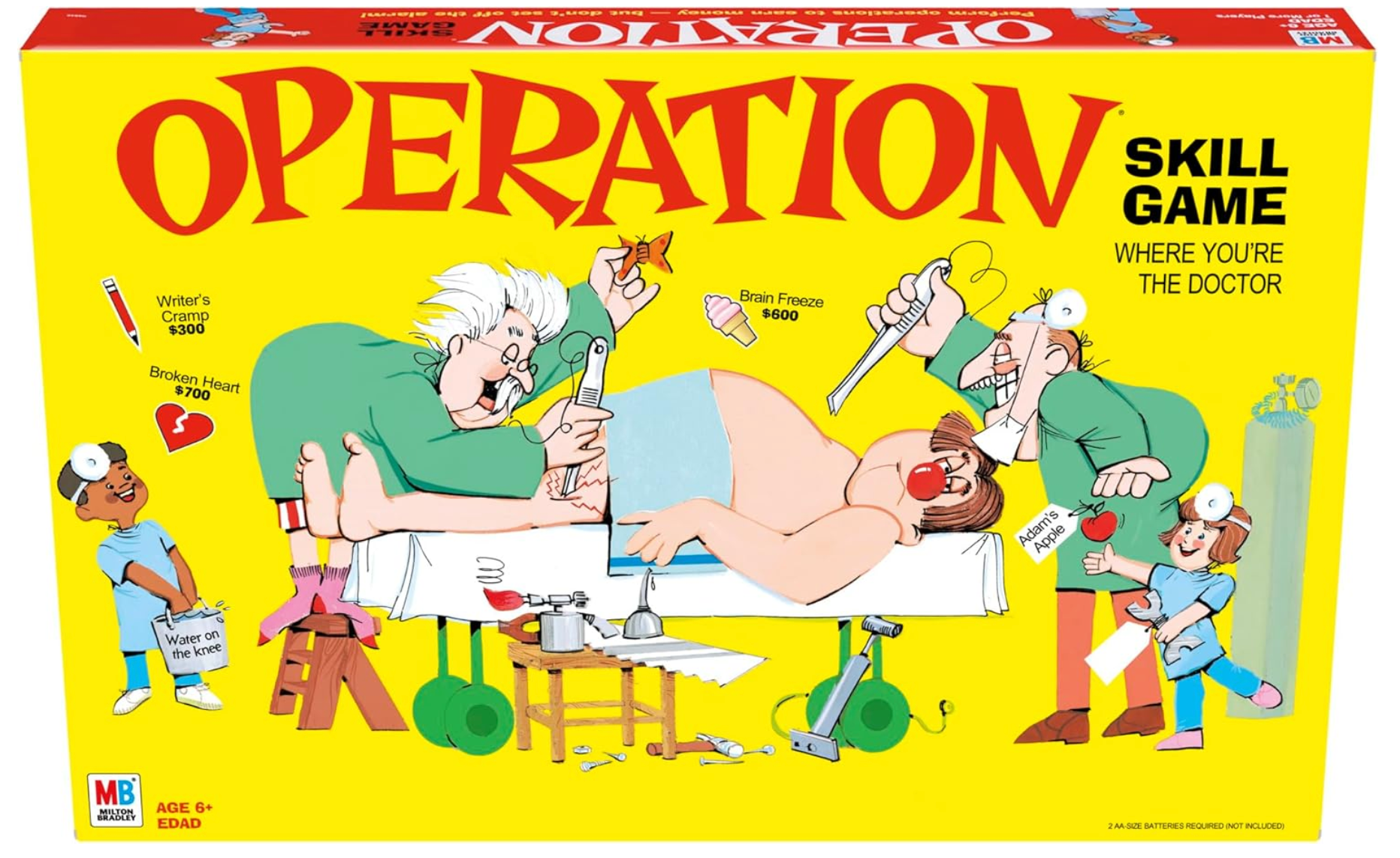 You’re—BZZZT!—basically a doctor. It’s the favorite kids board game with exciting updates! In this edition of the Operation game, choose from 2 ways to play: classic gameplay in Hospital mode or an edge-of-your-seat frenzy in Emergency mode. In Hospital mode, little doctors draw Bandage cards for wacky ailments. The suspense builds as they try to keep their hands steady while operating on Cavity Sam or—BZZZT!—his red nose lights up! In Emergency mode, the race is on to remove as many ailments as possible before time’s up. But oops! If the tweezers hit the side, Cavity Sam will burp, yelp, and make other hysterical sounds that keep kids giggling! In both modes, whoever removes the most ailments wins—and “heals” their patient. This adorable game comes in an all-in-1 carrying case with storage, so it’s a great kids travel game for anytime, anywhere play.