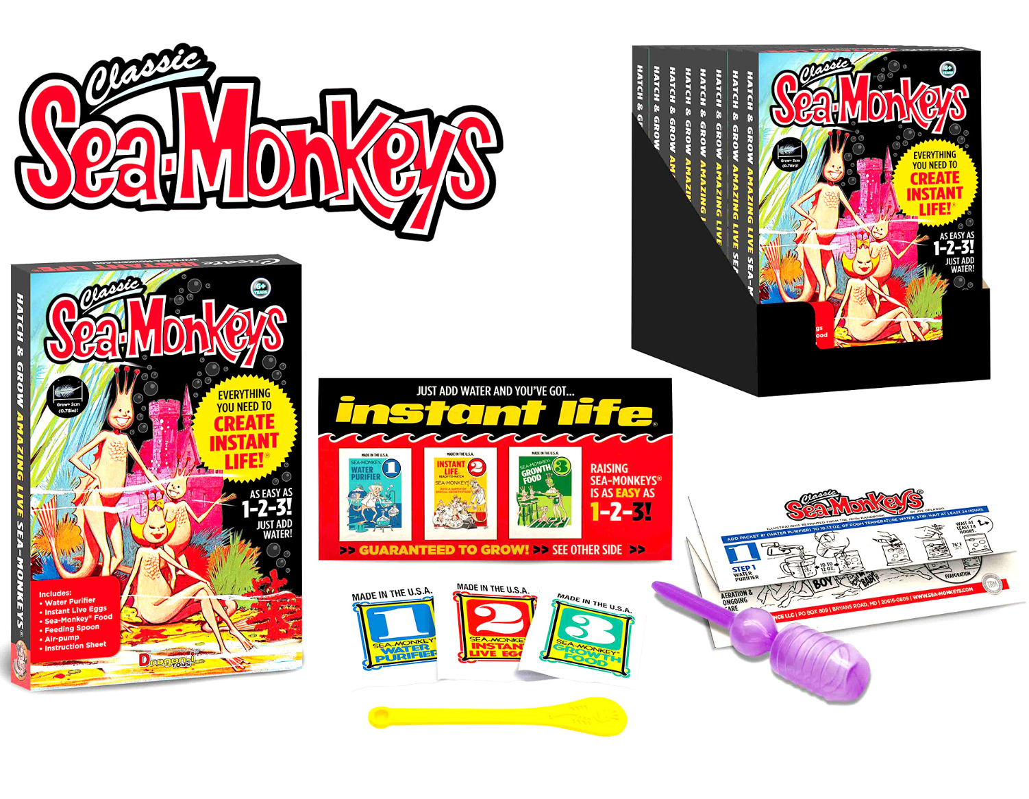 Welcome to the whimsical world of Sea Monkeys! These tiny, magical creatures hatch right before your eyes, turning your tank into a lively underwater adventure. Perfect for curious minds, they’re easy to care for and endlessly entertaining as they swim, play, and grow. Dive into a miniature ocean of fun and watch your new aquatic friends come to life!
