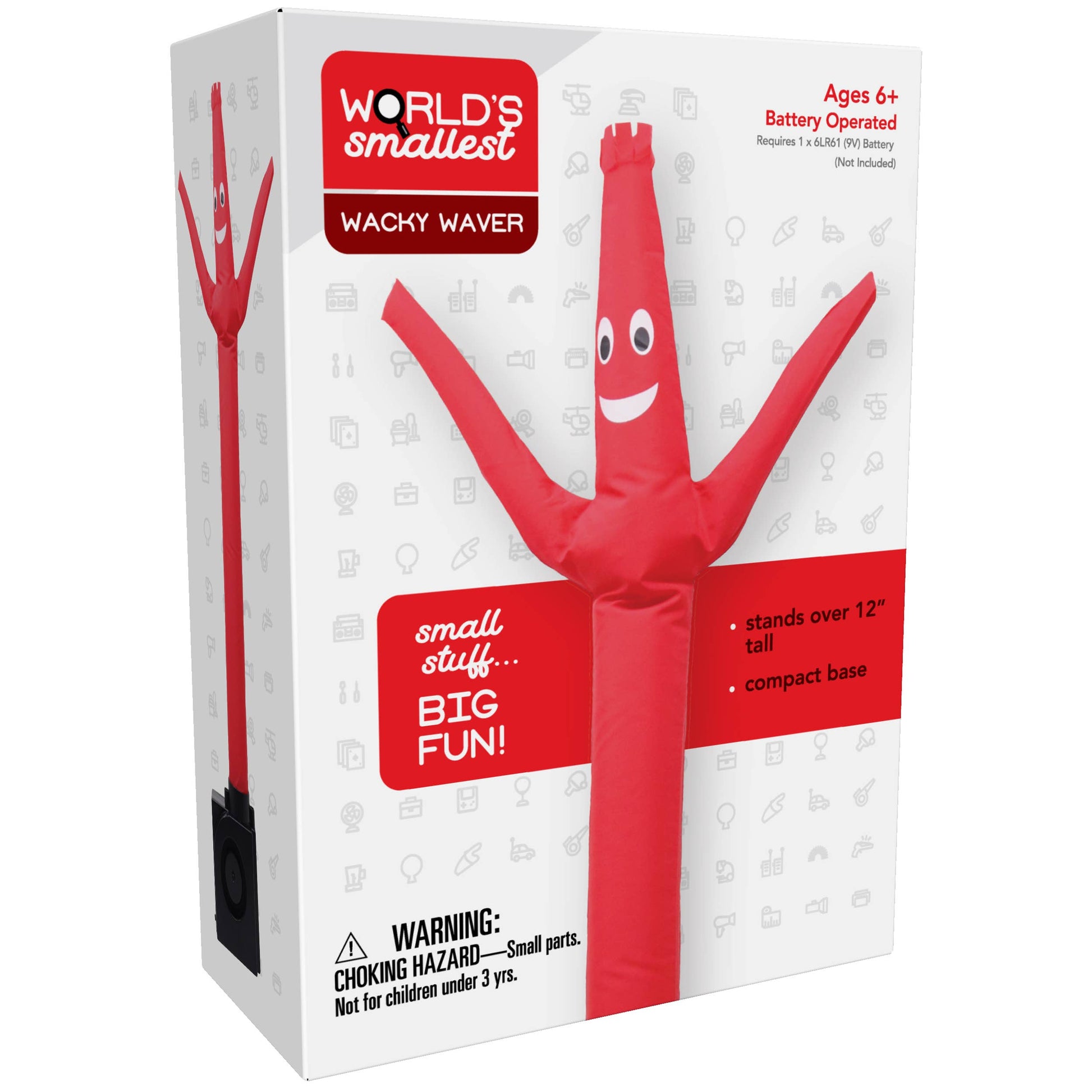 The World’s Smallest Wacky Waver Man brings big energy in a tiny package! Standing 12 inches tall, this mini waving tube man dances, wiggles, and shakes with the help of a built-in fan in the base—just like the full-size version. Perfect for desktops, parties, or a dose of fun anywhere. Batteries not included. Great for ages 6 and up!